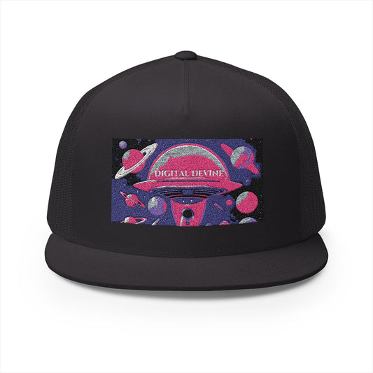 Digital Divine 5 Panel Trucker Cap - Space-Themed Embroidery
